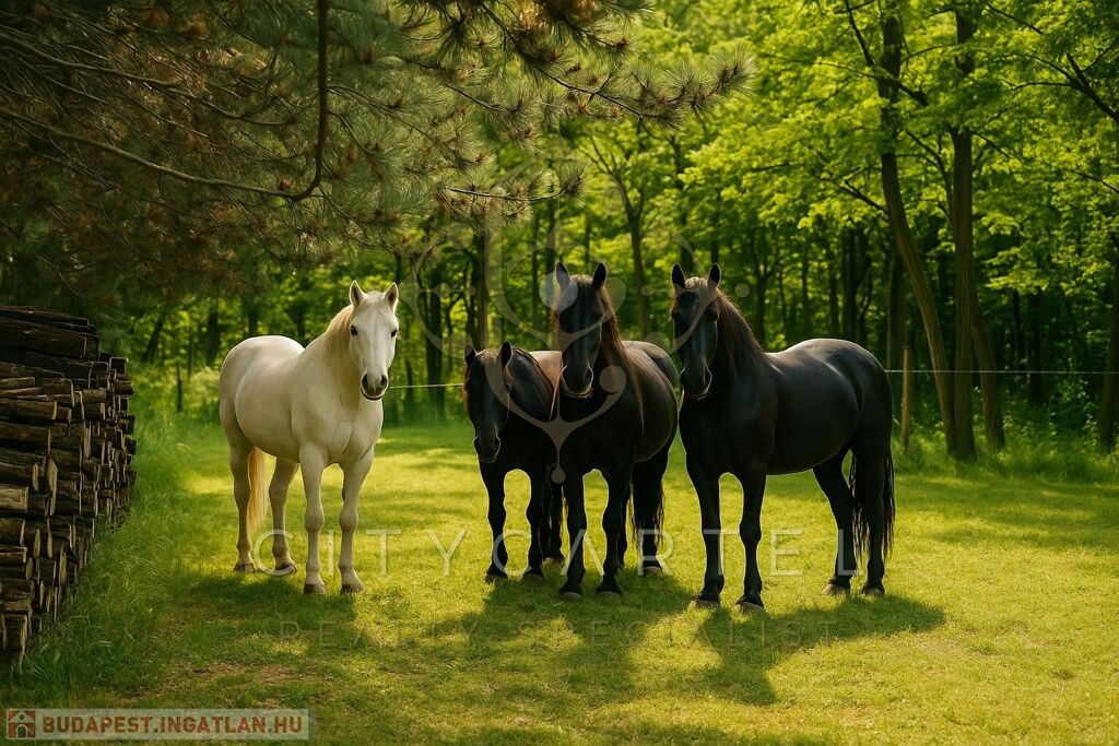 A rét fölött fátyolszerű köd sodródik, engedve a felkelő nap aranyló simításának. A harmat ezernyi apró gyöngyként ragyog a fűszálakon, a levegő friss, szinte érinthetően tiszta. A kúria széles tornácáról a tekintet lassan végigsiklik a végtelen zöldön, majd megakad a mozdulatlanul pihenő lovakon. A kertben a medence víztükre úgy őrzi a hajnal színeit, mintha egy festő most tette volna le az ecsetet. A konyha felől frissen őrölt kávé illata bontja meg a csendet – a birtok lassan ébredezni kezd.