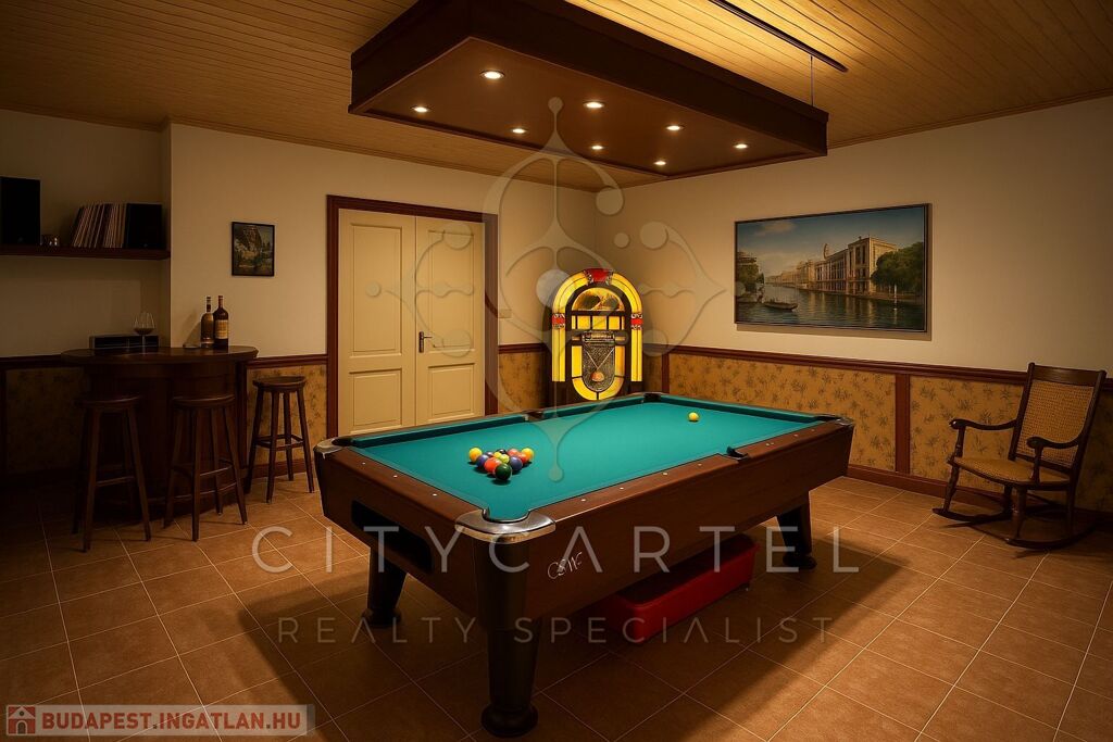 A villa keleti teraszát szinte öleli a napfény. A dombtetőről a tekintet aranyló gabonatáblákon és zöld erdősávokon siklik végig. Bent a nappaliban a fény és árnyék lassú táncot jár a falakon, a konyhából friss kenyér illata terül szét. A pince mélyén sorakozó borospalackok és a biliárdasztal mellett függő lámpa egy nyugodtabb korszak hangulatát idézi.