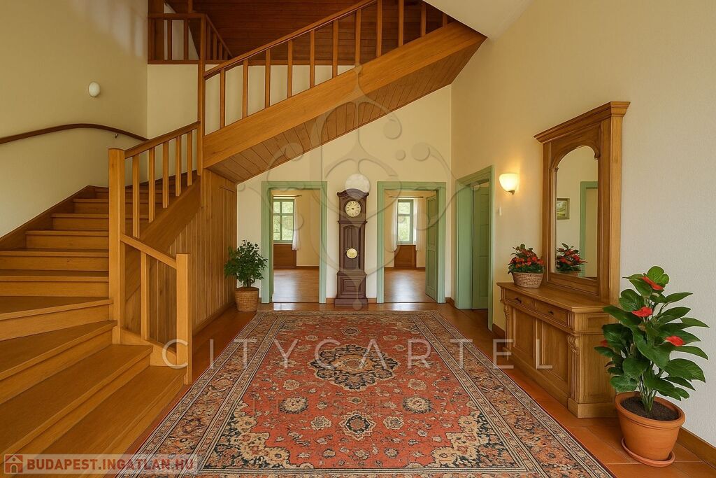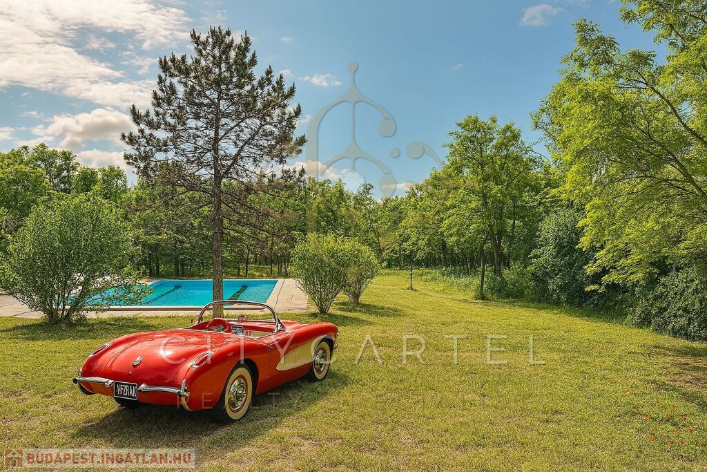 A kúria előszobája finoman visszhangozza a lépések neszét. A könyvtárszoba félhomályában a napfény vékony aranycsíkokban érkezik, lágyan megpihenve a könyvek gerincén. A nappali padlója halk sóhajjal engedi a járást, a cserépkályhák még őrzik a tegnap melegét. A kert felé kilépve a lombok közt átsuhanó szellő az arcot simogatja, a medence vize mozdulatlan, akár egy zöld bársonyra helyezett drágakő.