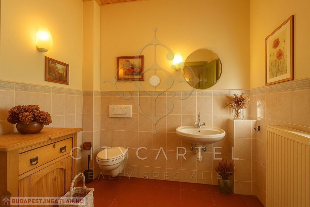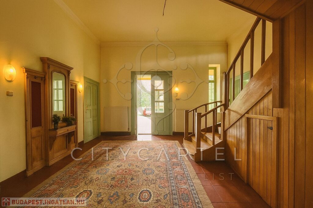 Helyiségek: földszinten tágas előtér és nappali, hálószoba fürdőszobával, könyvtár, étkező, konyha, vendég toalett, emeleten közösségi terek, jelenleg 2 hálószoba, de akár több is kialakítható, fürdőszoba