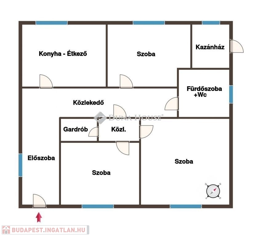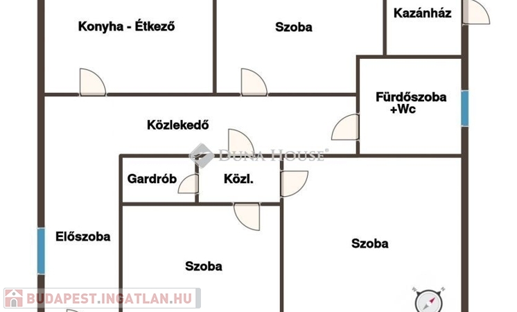 Az ingatlanban 3 különnyíló szoba, egy étkezős konyha, egy fürdőszoba+wc, egy előszoba, és a helyiségeket összekötő közlekedő helyiségek találhatóak. Az egyik szobához praktikus gardróbhelyiség is csatlakozik. Könnyen átalakítható nappali + 3 hálószobássá is, belső elrendezése remekül áttervezhető.
