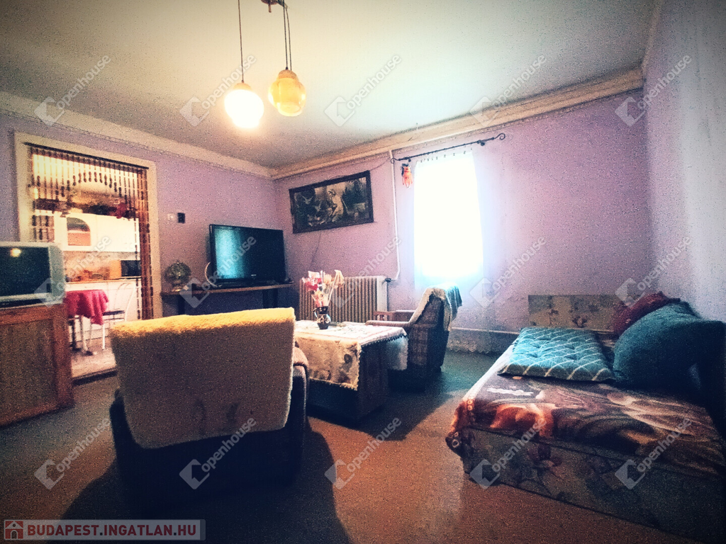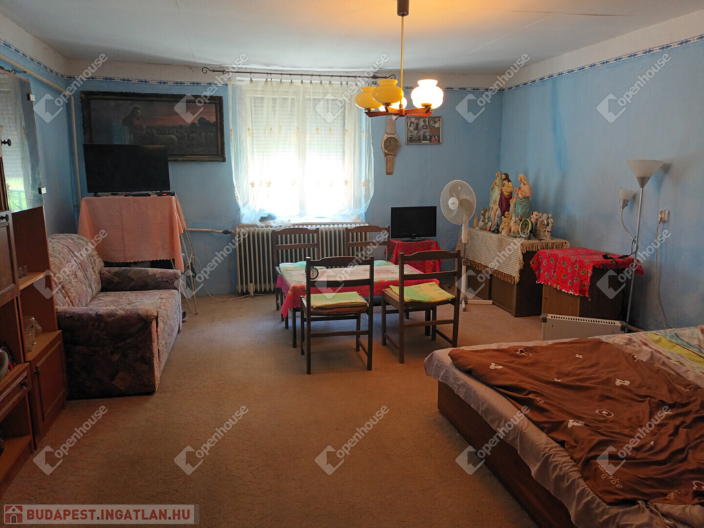 A főépület 90m²-es, vegyes falazatú, jelenlegi elosztása szerint három szoba, két konyha és egy fürdőszoba található benne. Két bejárattal rendelkezik, így több generációs családoknak vagy összeköltözőknek is ideális választás lehet. Az ingatlanban két külön villanyórát alakítottak ki. A fűtést fatüzelésű központi fűtés biztosítja. A tető 2000-ben felújításra került, jelenleg is jó állapotú.