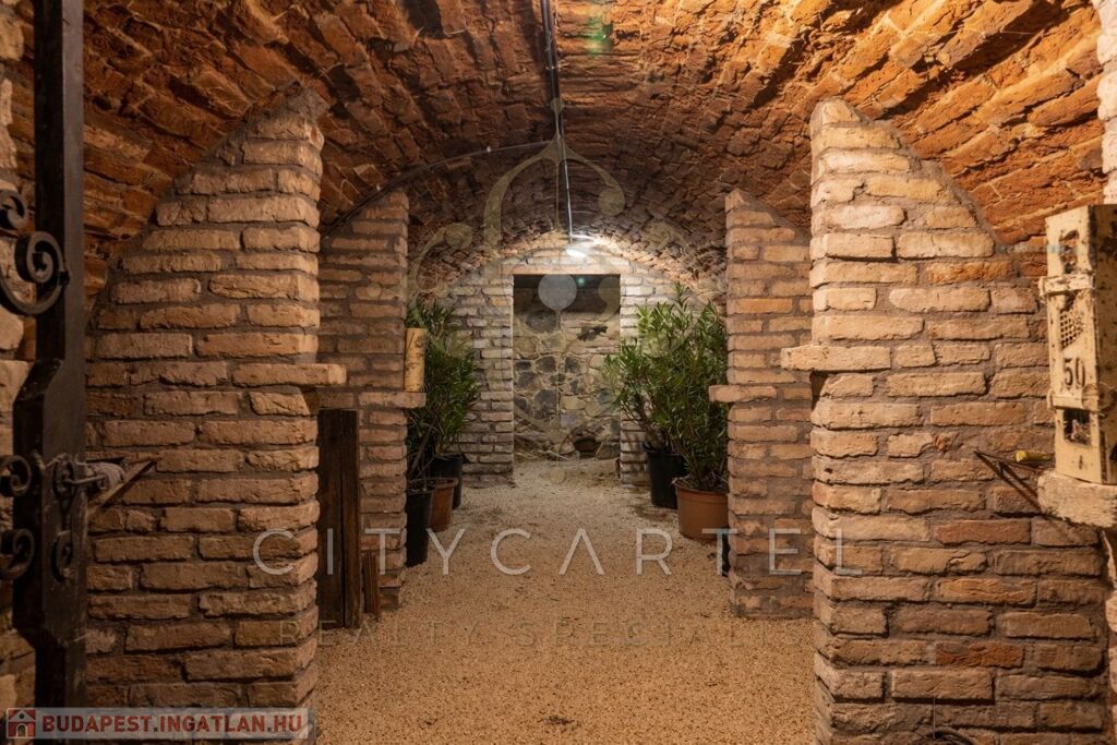A kastély egyik legkülönlegesebb hangulati eleme a téglából épített borospince, amely kovácsoltvas ajtajával valódi kuriózum, és tökéletesen illeszkedik az épület történelmi miliőjéhez. A birtokon ezen felül egy különálló, pincés kerti ház is található, amely ideális tárolóként szolgálhat a kert- és parkfenntartáshoz szükséges gépek, eszközök és felszerelések számára.