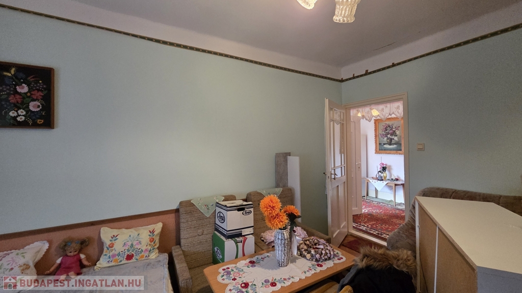 A burkolatok állapota jó: a szoba parkettás, a vizes helyiségek járólaposak, illetve PVC burkolatot kaptak. A bejárati ajtó cseréje megtörtént, a nyílászárók pedig általánosságban jó állapotúak.