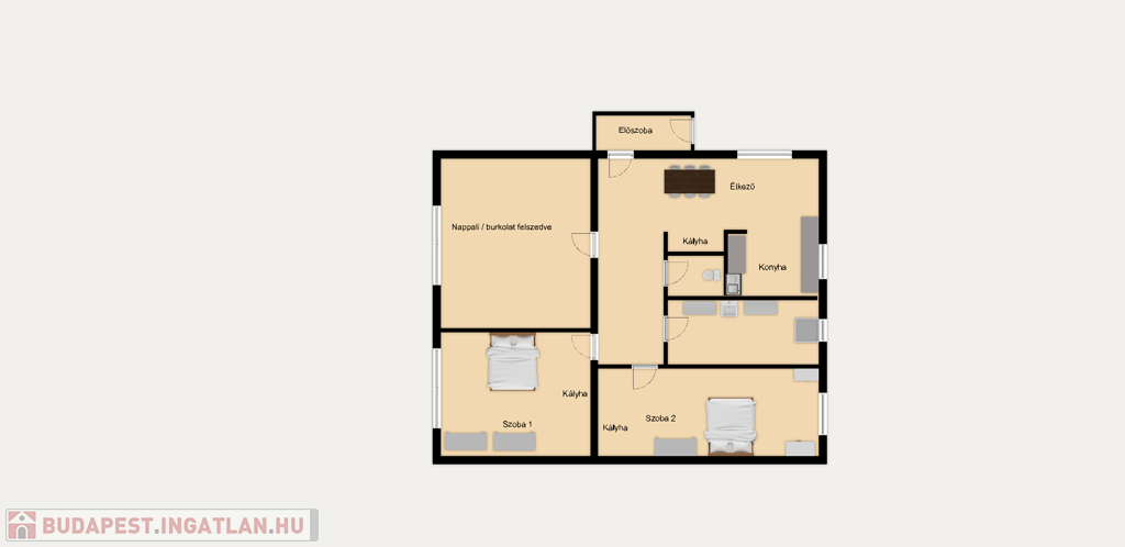 • 3 szoba, külön fürdőszoba és WC, konyha, étkező