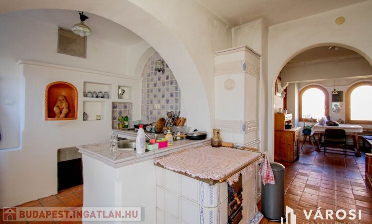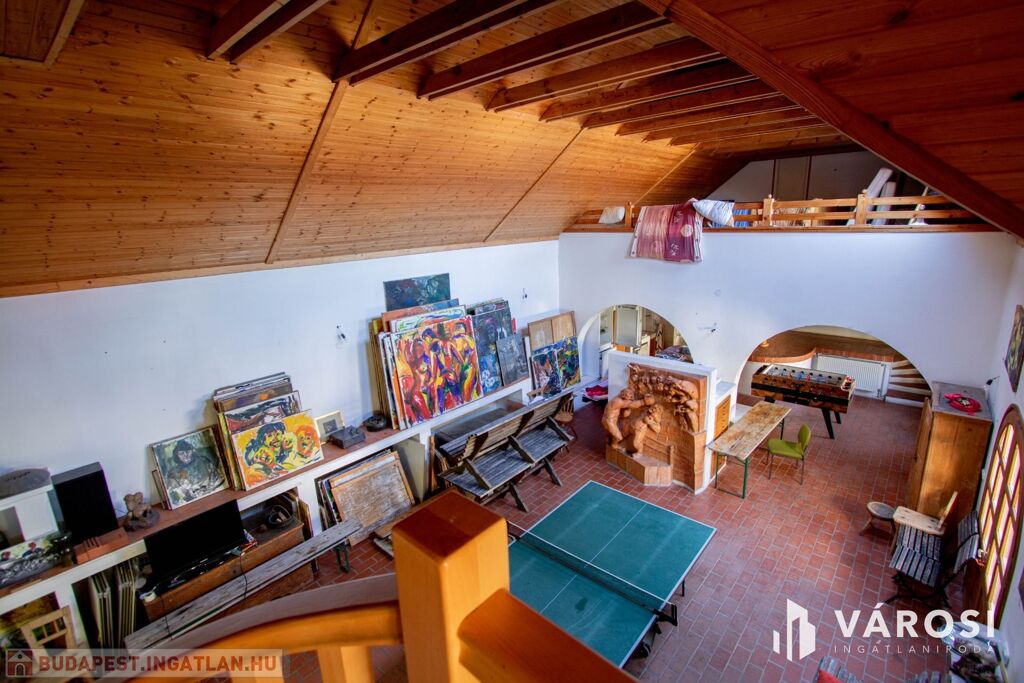 Az ingatlan remek választás olyan embernek, akinek szüksége van alkotói térre vagy a munkája miatt hasznosítani tudja a közel 120 nm nagyságú művészi részét a háznak, de akár befektetési célra is kiváló választás. A ház lakrésze 140 nm hasznos alapterületű, itt akár 4 szoba, 1 nappali, 1 előtér + étkező, 1 konyha és 1 fürdő+ WC található, jelenleg ez is egyedi stílusba van berendezve, de az elosztása adott, abból könnyedén kialakítható egy nagyobb család számára praktikus lakrész.