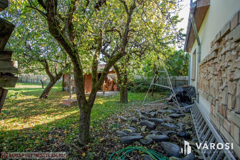 Az udvara parkosított, egy kerti kis tó is található benne, ami egy kis törődésre vár, de nagyon hangulatos hatást kelt így is. Tárolásra egy hangulatos kis faház lett felépítve.