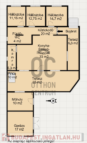 - a földszintes épület helyiségei: 3 tágas hálószoba, egy légtérben amerikai konyha-étkező-nappali, fürdőszoba, külön WC, közlekedő, terasz, kamra kapott helyet