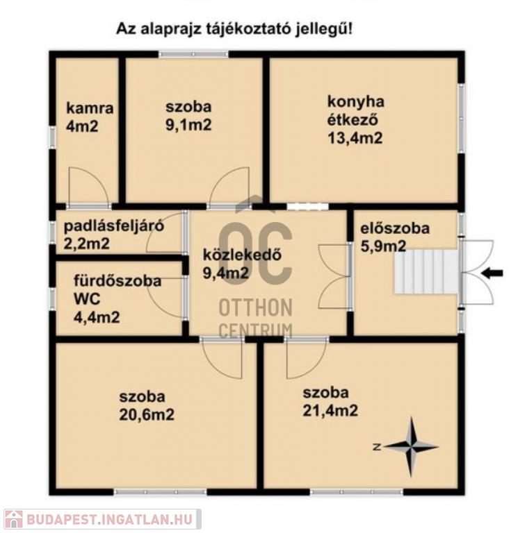 - 90,4m2 lakótér helyiségei: 3 szoba, tároló, közlekedő, konyha-étkező, kamra, fürdőszoba wc-vel