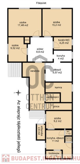 - szoba, konyha-étkező, fürdőszoba, külön WC, kis kamra