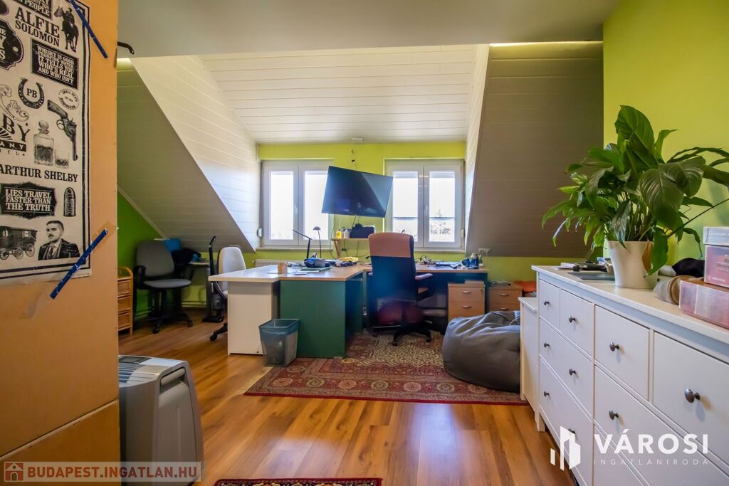• Korszerűsített műszaki állapot: A felújítás során a külső nyílászárók cseréje megtörtént, a födém szigetelést kapott, a tetőteret pedig beépítették.