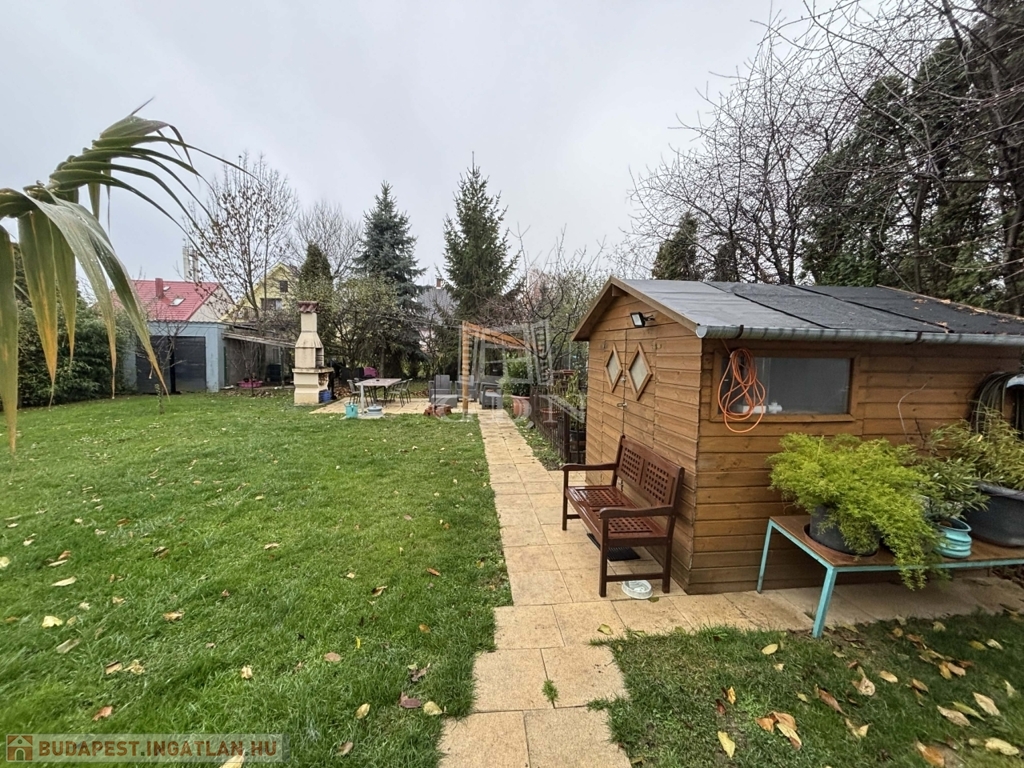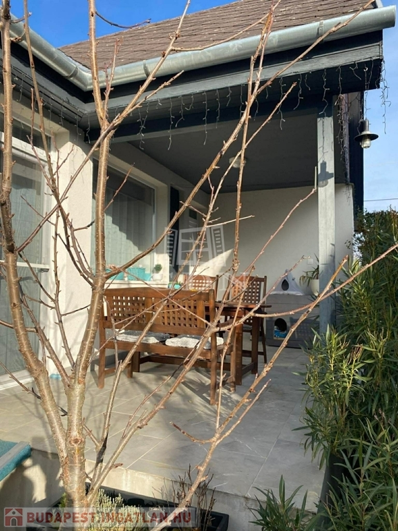 12 m2-es fedett teraszról csodálhatjuk a gondozott udvart, melyen kerti tároló, grillező és garázs található.