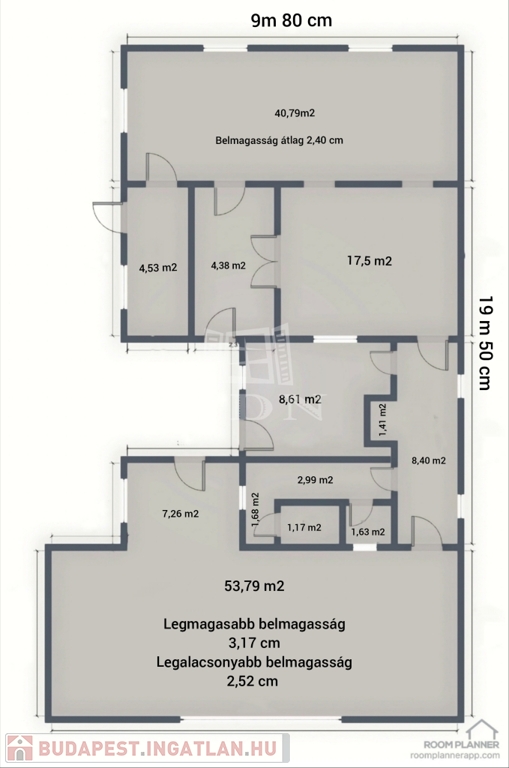 A több mint 150 m2-es ingatlan első fele élelmiszer boltként üzemelt, míg a hátsó plusz 50m-es szendvicspanelből hozzáépült részben pedig egy kisebb konditerem működött. Jelenlegi kialakításának köszönhetően 2 szoba, 1 nappali, konyha+ étkező, fürdőszoba+ wc illetve egy előszoba található. A vegyes falazatú ingatlan átlag belmagassága 240cm, nyílászárói fa szerkezetűek kivétel az első bejárati ajtó, mely hőszigetelt műanyag nyílászáróra lett cserélve. Az otthon melegét gázkonvektorok biztosítják, a meleg víz ellátását pedig villanybojler látja el.