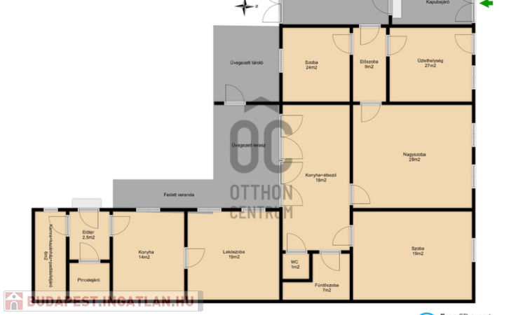 Szobák: Az ingatlan 5 nagy szobával rendelkezik valamint egy utcára nyíló üzlethelységgel, melyek különböző célokra – lakás, iroda vagy bemutató terem – is hasznosíthatók. A két külön bejáratnak köszönhetően az ingatlan többféle felhasználásra is alkalmas, például irodának vagy akár két különálló lakrész kialakítására is. A ház cserépkályhával és gázcirkó fűtéssel is felszerelt, így a fűtés gazdaságosan és rugalmasan megoldható. Az ingatlanhoz tartozik egy fedett terasz, amely kiválóan alkalmas pihenésre, kerti bútorok elhelyezésére, vagy akár kültéri étkezésekre. A 638m2-es udvarban található kút kiváló lehetőséget nyújt a kert gondozásához vagy más vízigényes tevékenységekhez.