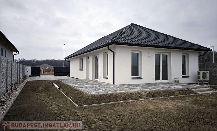 Máriakálnokon új építésű családi ház minőségi anyagok kivitelezésével, HŐSZIVATTYÚVAL, 45 m2 térkövezett terasszal, kocsibeállóval, parkosítva eladó!