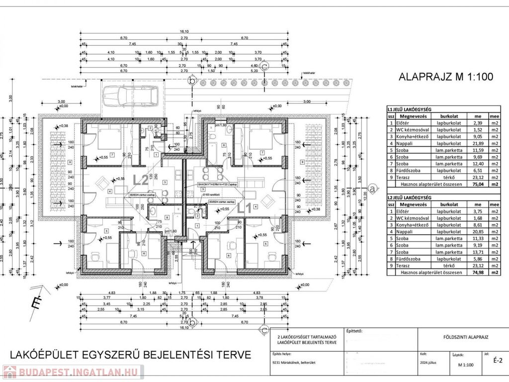 Mosonmagyaróvár szélén, kulcsrakész, új építésű ikerház 2 lakása A++ energetikával eladó!