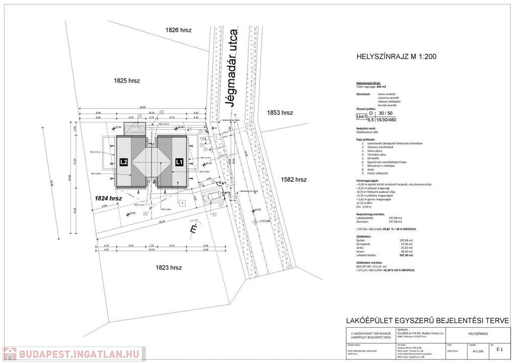 Az ikerházak egy 660 m2-es telken épültek fel. Ebből a 2. lakáshoz kb. 382 m2 saját terület tartozik.