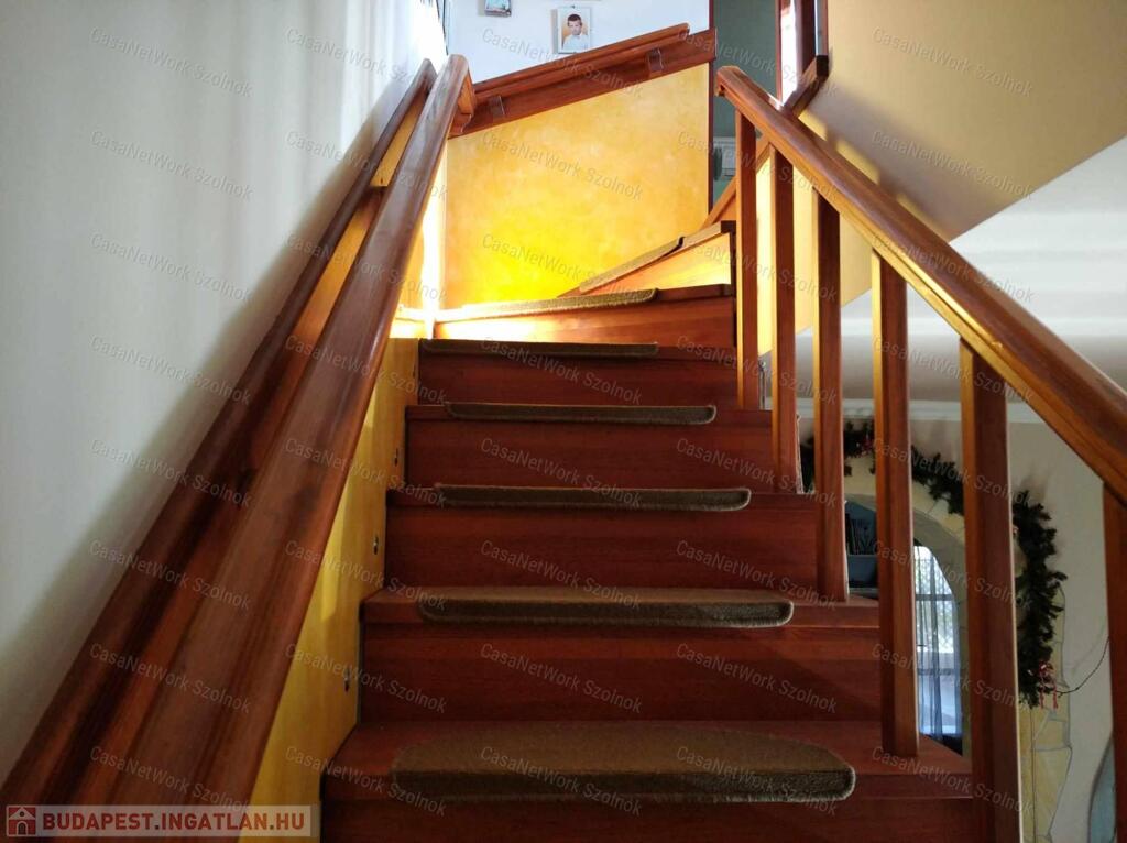 - a felső szintre egy gyönyörű asztalos által egyedileg készített stabil fa lépcső vezet, ahol egy dolgozó sarok , egy hálószoba és egy fürdőszoba zuhanyzóval, illemhelyiséggel együtt található