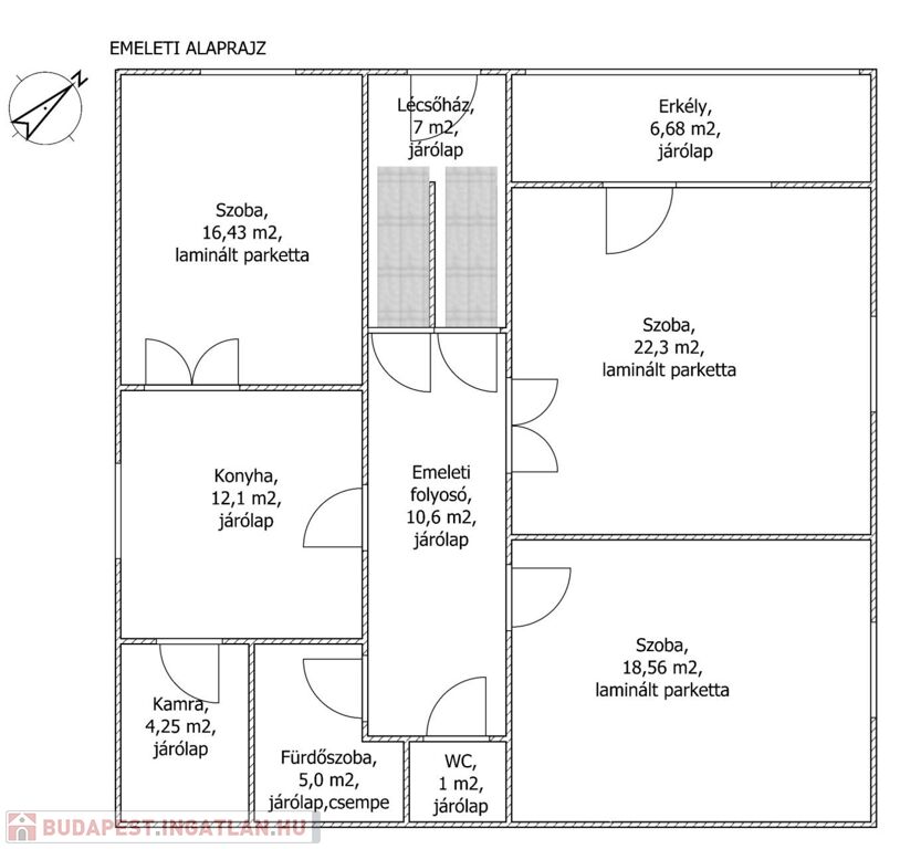 A padlás tágas, magas, a lépcsőházból lépcsőn megközelíthető, ezért további lakótér bővítési lehetőséget is kínál.
