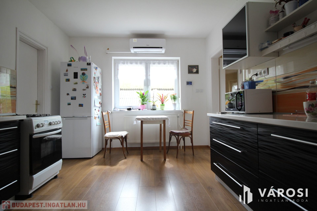 A központifűtés gázkazánnal és vegyes tüzelésű kazánnal kombináltan üzemel. Alap esetben a gázkazán fűti a házat, de a rendszer automatikusan átkapcsol ha a vegyes tüzelésű kazánba begyújtanak, ennek köszönhetően a ház fűtése meglehetősen gazdaságos. A konyhában klímaberendezés is van. A belső terek elosztása praktikus, jól kihasználható. A tető szigeteléssel ellátott cseréplemezes manzárd tető, az ácsolata jó, sérülés és szú mentes. A padlás tágas, magas, a lépcsőházból lépcsőn megközelíthető, ezért további lakótér bővítési lehetőséget is kínál.