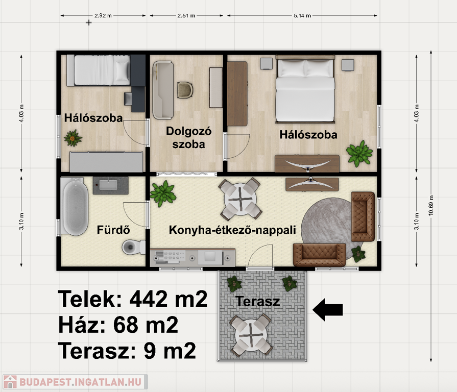 - Az épület előtt található egy 3x3m-es fedett terasz
