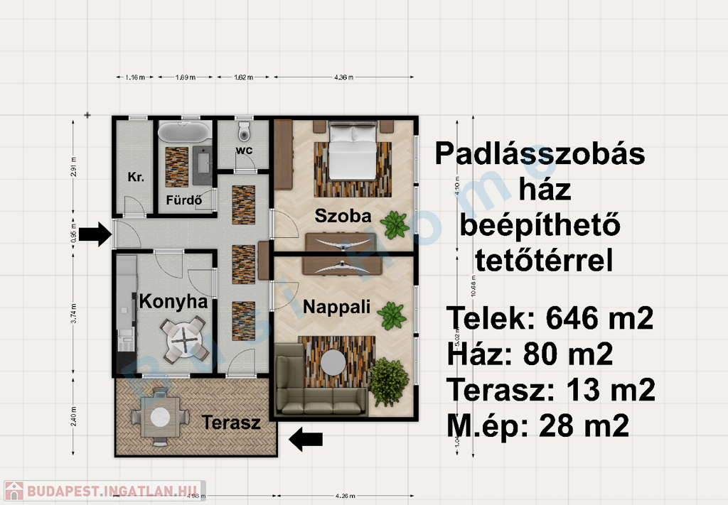 - beton födémmel rendelkezik, ezért a ház tetőtere a jövőben beépíthető, így tovább 2-3 szobával növelhető a terület