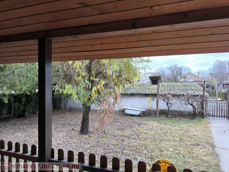 Budapest-közeli, nyugalmas otthon Mikebudán! Eladó Pest vármegyében, Mikebudán – Budapesttől csupán 50 km-re – egy tágas, hangulatos 99 nm-es családi ház, 868 nm-es körbekerített telekkel. 1996-ban épült, B30 téglás, 8 cm szigetelt, fafödémes, Femina égetett cseréppel fedett. Praktikus elosztás: előtér, 3 szoba, étkező+nappali, konyha, kamra, fürdőszoba, külön WC, kazánház. A belső terek igény szerint alakíthatók.Két bejárat, elöl–hátul; a hátsó terasz intimebb kertrészbe vezet – tökéletes családi és baráti összejövetelekhez. Főbb műszaki jellemzők:Réz elektromos vezetékek, 3×20 A + éjszakai áram. Műanyag nyílászárók, kétrétegű thermo üveg. Laminált padló a szobákban, a többi helyiségben kerámia burkolat. Melegvíz: bojler. Fűtés: radiátoros, vegyestüzelésű kazán . Vezetékes víz, 8 m³ emésztő, gázcsonk a telken.Locsoláshoz fúrt kút, állattartáshoz ólak,Garázs: 20,62 nm.