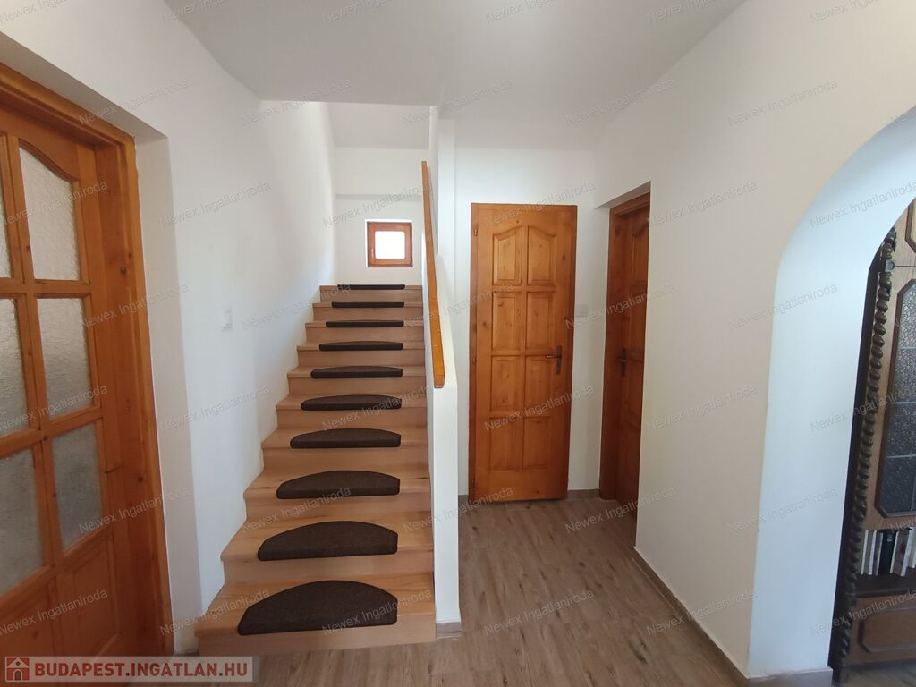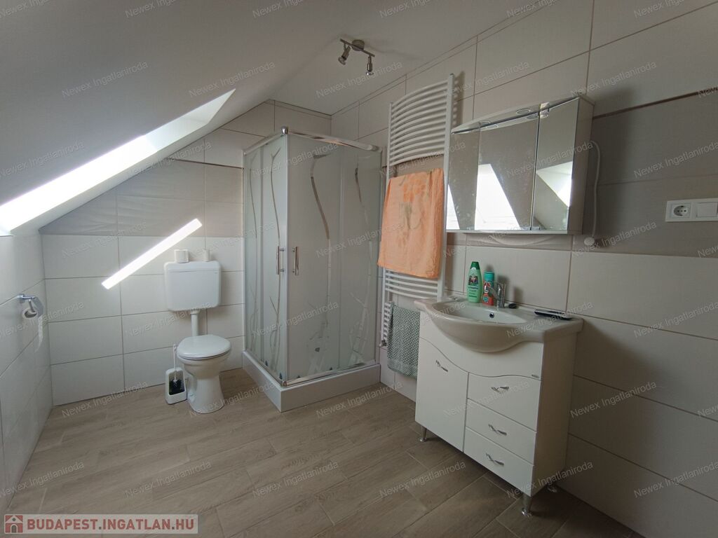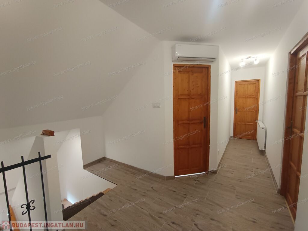 Felső szint: 2 hálószoba, fürdő + WC, közlekedő, tároló.