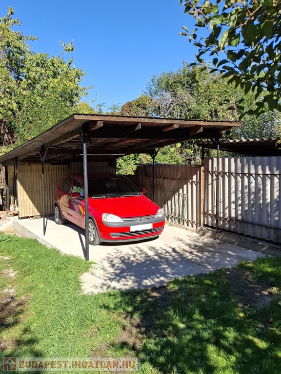 - Önálló garázs + fedett autóbeálló szerelőaknával