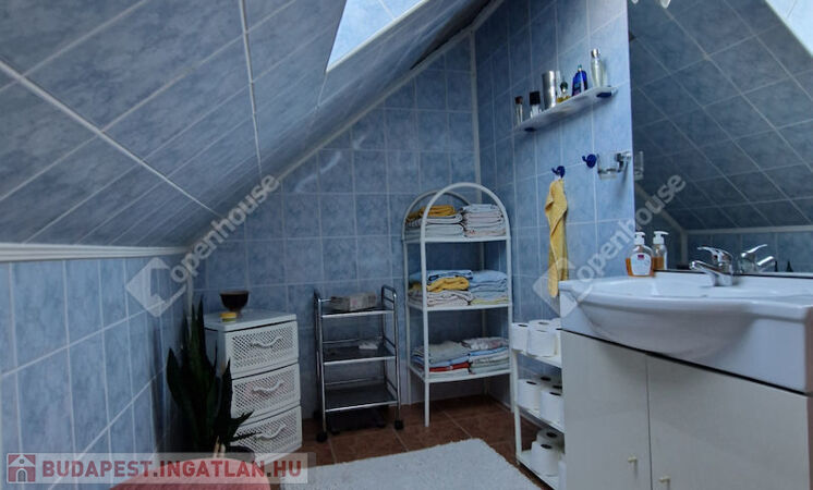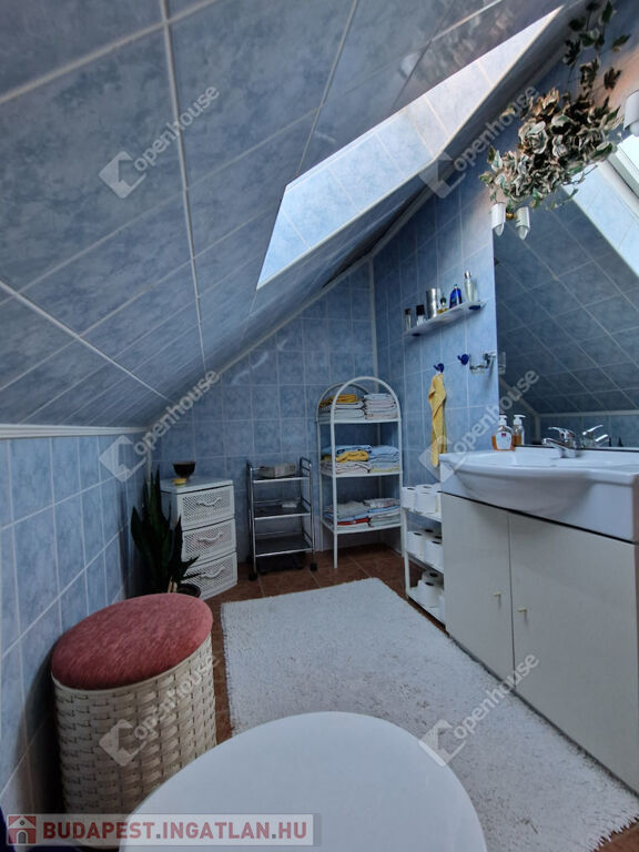 - tetőtér: közlekedőből kialakított stabil szerkezetű lépcsőn közelíthető meg a társalgó, fürdőszoba, két külön nyíló kényelmes méretű tetőtéri szoba melyek egyikéből utcafront felé kialakított erkély kapott teret