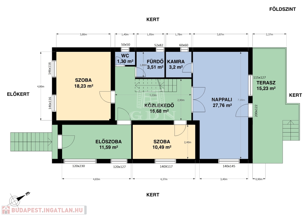 Extra felszereltség : elektromos aluminium redőnyök, szúnyoghálók, biztonsági kamera. Éjszakai beltéri világítás.