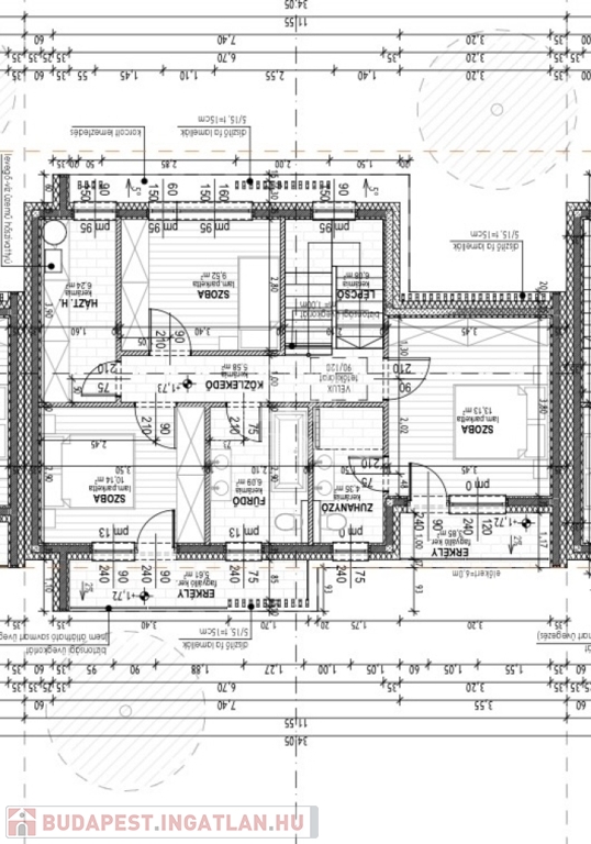 Az emeleten három hálószoba, fürdőszoba, külön zuhanyzó és háztartási helyiség került kialakításra, kényelmes közlekedőkkel.