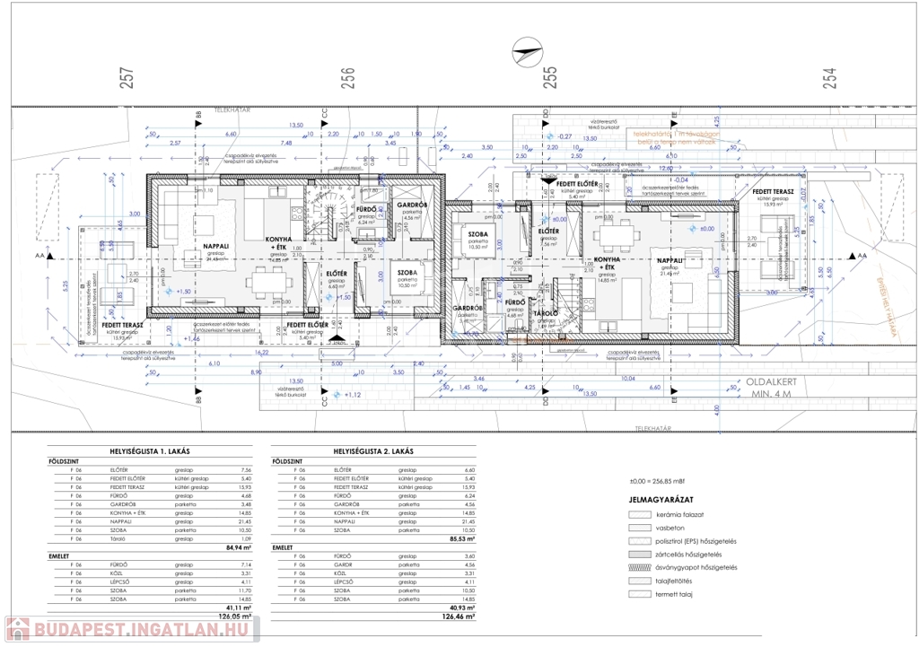 -Az ingatlanok dupla fallal érinkeznek, közötte 15cm-es szigeteléssel