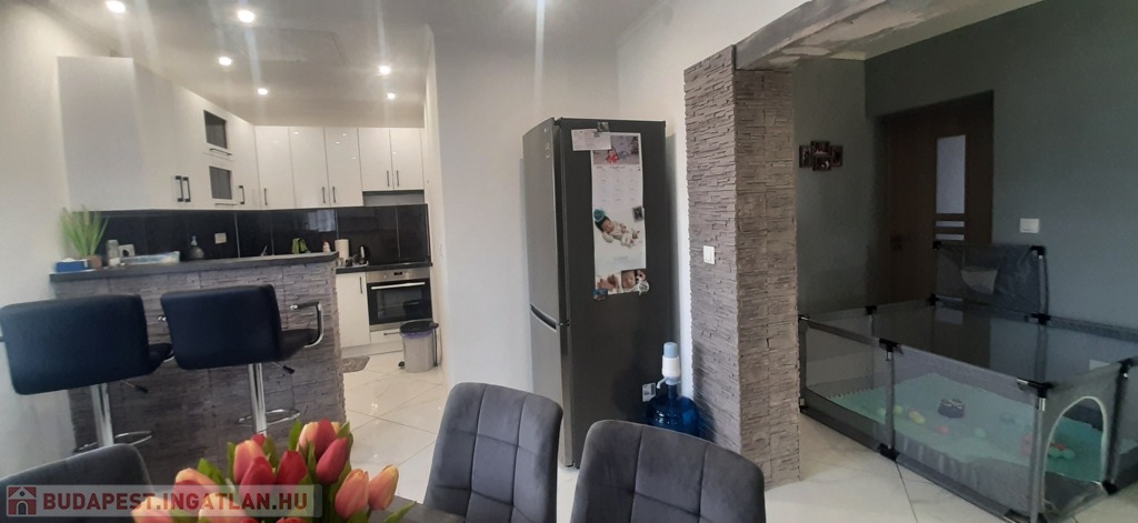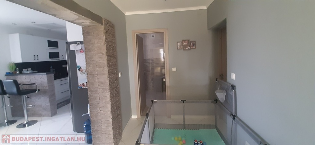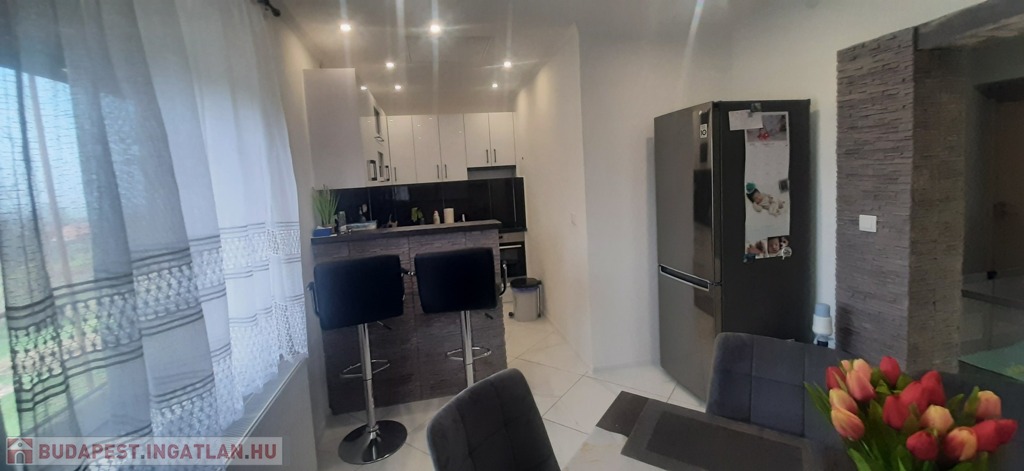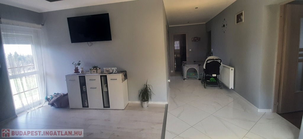 Az alsó szint még befejezésre vár, így tökéletes lehetőség azok számára, akik egy saját elképzeléseik szerint alakítható otthont keresnek. A felső szint modern és igényesen felújított, így azonnal költözhető.