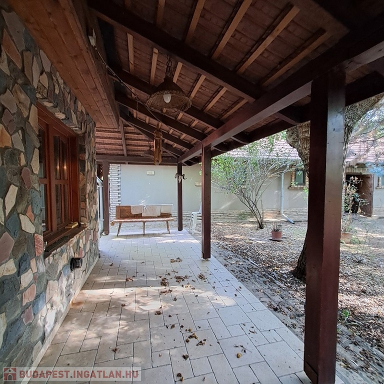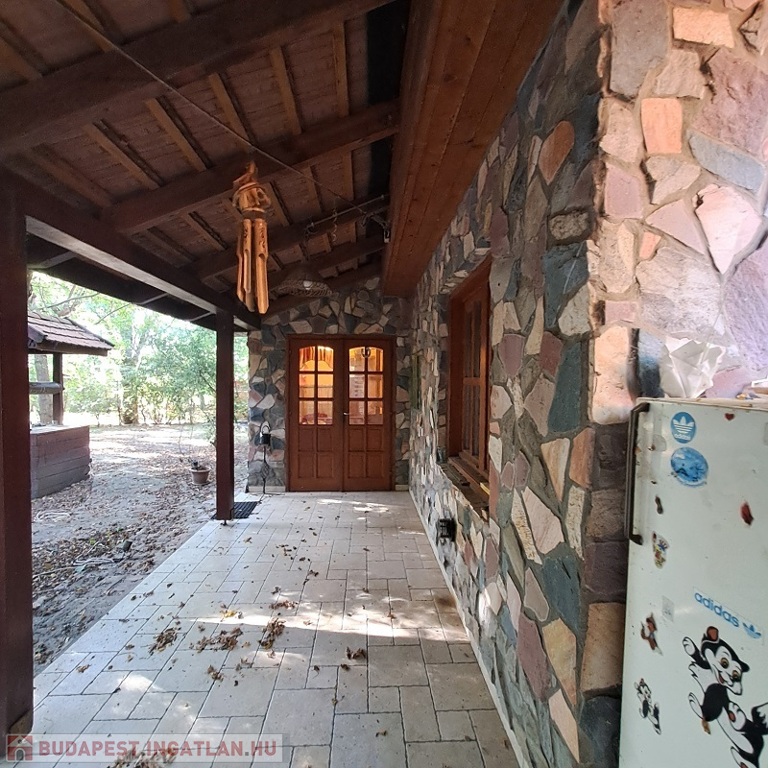A telken található egy faház, mely kb. 14 m2, belül teljesen lambériázott, akár szauna is kialakítható benne, ezen kívül egy fával fűthető DÉZSA FÜRDŐ.