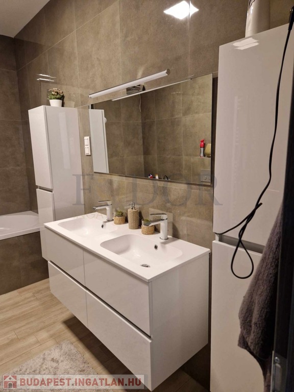 • Két fürdőszoba prémium szaniterekkel: Elegancia, kényelem és praktikum egy helyen – a törölközőszárítós radiátorokkal még a hűvös reggeleken is kellemes az indulás.