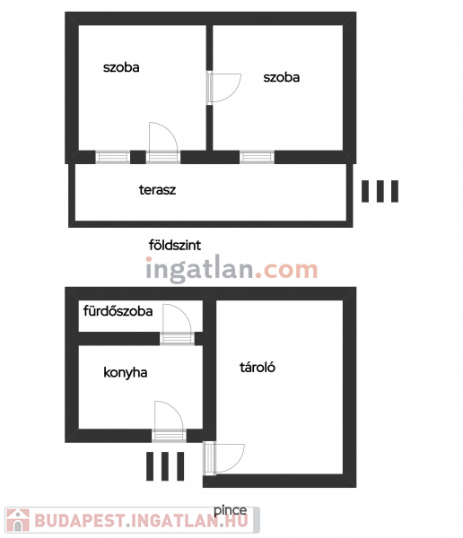 A felső részben pedig két helyiség, melyek szobaként funkcionálhatnak.
