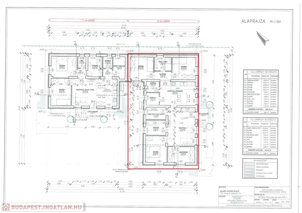 Parkolás: saját felszíni beálló, elektromos kapu előkészítés.