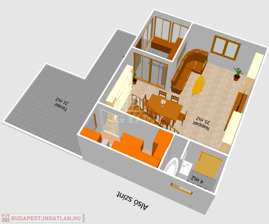 - fürdő-wc (kád+ tusoló - meleg víz ellátás 80L-es bojler)
