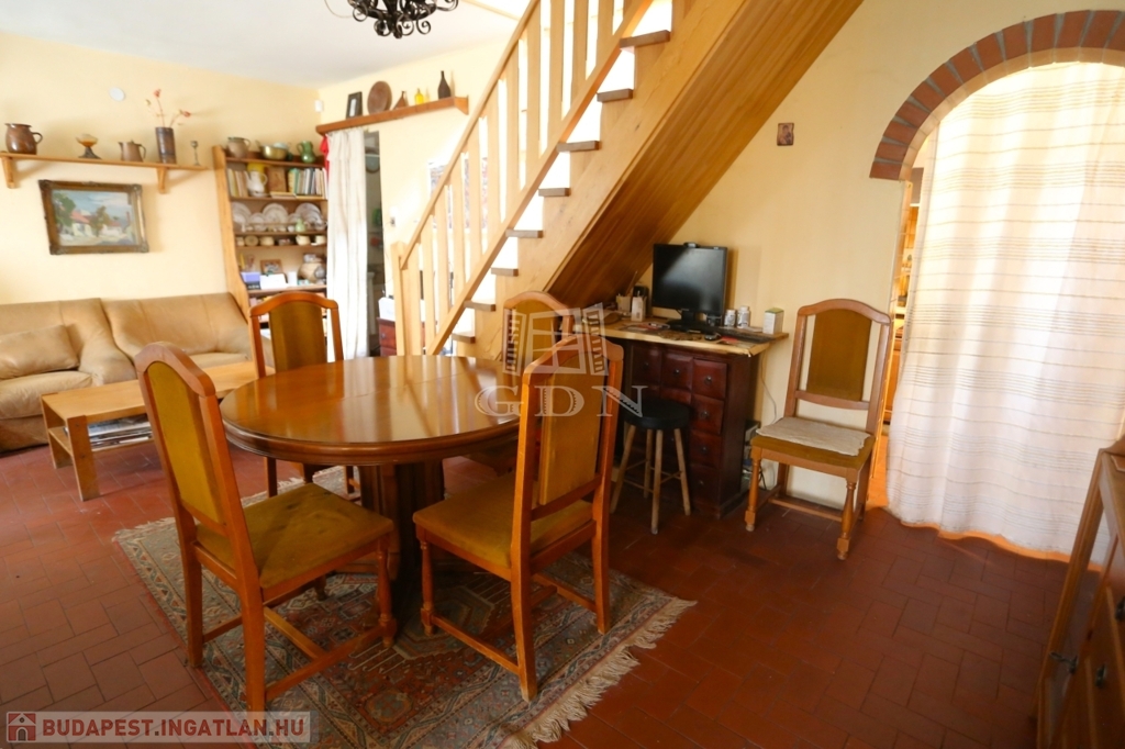 A település központjától 6 perc távolságra található a hirdetésben kínált, 1728 m²-es telken álló önálló családi ház borospincével.