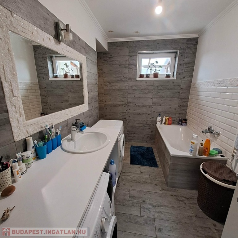 A ház a ’80-as években épült beton alapra téglából, 2019-től folyamatos felújításon esett át, (villanyvezetékek, 5 cm-es aljzatbeton szigetelés, 25 cm üveggyapot + 7 cm perlitbeton födémszigetelés, burkolatokat – szerelvényeket cseréltek, a nyílászárókat 2 rétegű műagyagra cserélték). Elkezdték a ház külső szigetelését 10 cm-es hungarocellel, ezt még az eladó be fogja fejezni.