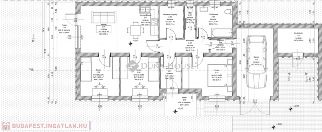 A 2. lakás hasznos lakóterülete 81,28 m2+egy önálló garázs és teraszok.