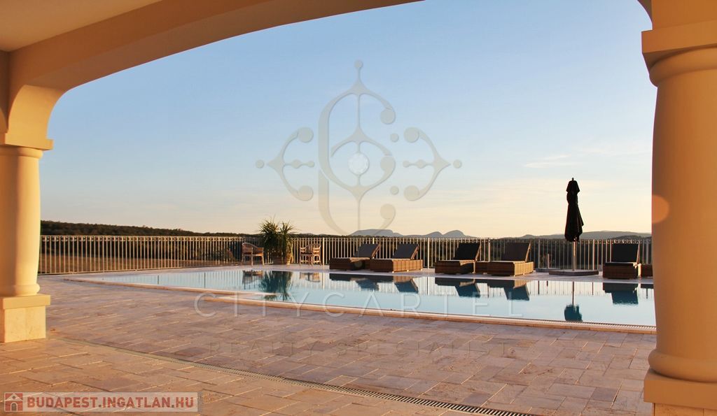 A kültéri medencéből (6,5 m x 17,5 m) is gyönyörű kilátás nyílik a birtokra.