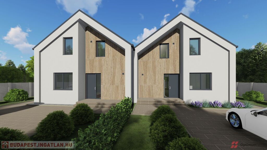 Mosonmagyaróváron a Duna Lakóparkban, ÚJ ÉPÍTÉSŰ, 364 m2-es telekrésszel rendelkező, 113 m2 hasznos alapterületű, 3 szoba + nappalis, kiváló alaprajzi elrendezésű, magas műszaki tartalommal épült, energiatakarékos hőszivattyús fűtési rendszerrel szerelt ikerház, részben fedett 20 m2-es terasszal, 36 m2 - es térkövezett gépkocsi beállóval emeltszintű szerkezetkész állapotban eladó.