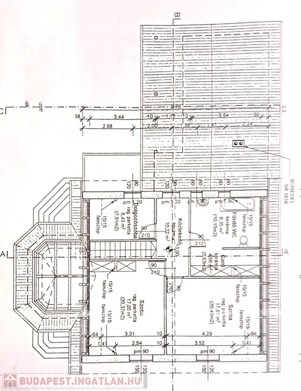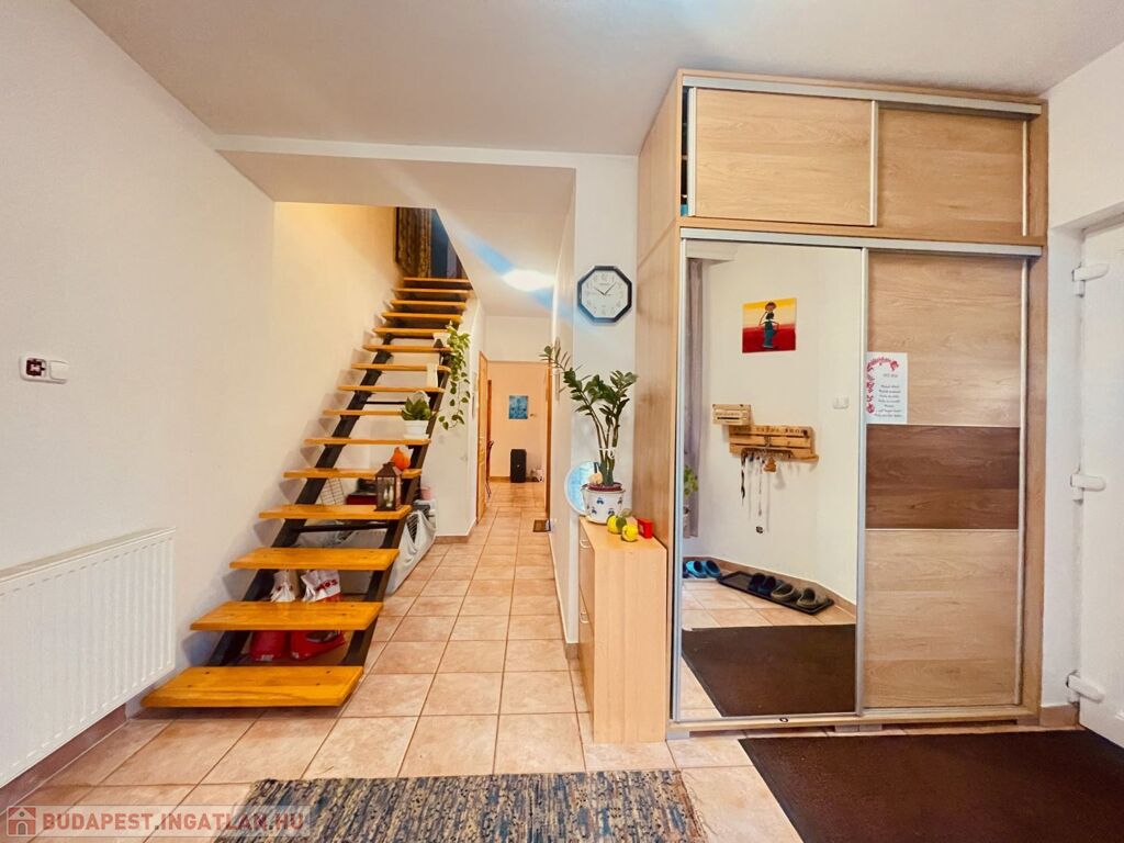 -emelet: előtér (10,22m2), dolgozó szoba (6,43m2), fürdő (8,35m2), szülői háló,faltól falig beépített óriási gardróbszekrénnyel és plusz egy gardrób helyiséggel (17,61m2+4,66m2), gyerek háló, faltól falig beépített óriási gardróbszekrénnyel. (17,05m2).