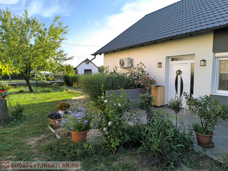 Az épület 122 négyzetméter, amely egy 1621 négyzetméteres telken található. A házban nappali és 2 hálószoba, 1 fürdőszoba található, illetve a konyha előterében egy tágas étkező, mely akár nappaliként is szolgálhat, és amelynek köszönhetően a család minden tagja kényelmesen elférhet. Az ingatlanhoz tartozik egy 20 négyzetméteres terasz, amely a kertre és a sziklakertre néz. Az ingatlan fűtéséről egy vegyes kazán és egy vadonat új gázkazán gondoskodik radiátorokon kersztül, míg a hűtése klímával megoldott, mellyel akár télen is rá lehet segíteni a fűtésre.