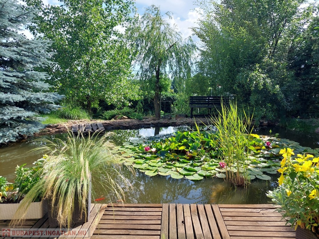 Az ingatlanhoz tartozik még 130 nm-es, fűtéssel és  elektromos kapuval felszerelt műhely, amely akár több célra is hasznosítható. Az 1067 nm-es telek egy része parkosított örökzöldekkel, sövénnyel beültetett és egy kerti tó található rajta amely szinte kapcsolódik a fedett teraszhoz.