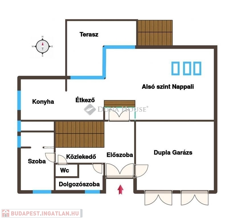 Az utcáról nyíló duplagarázsból kényelmesen megközelíthető az előszoba.