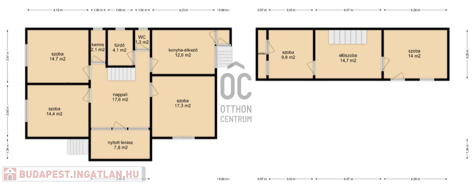 - A bejárat előtt egy 8 m2-es nyitott terasz helyezkedik el.