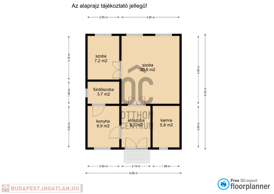 - 2 szoba, konyha, fürdőszoba, előszoba és kamra helyiségekkel rendelkezik. Elrendezése könnyen változtatható. Átalakítással akár a felette lévő tetőtér is beépíthető.